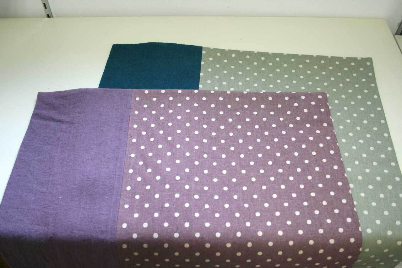片面が2枚のパーツになっていて、それぞれ違う布で作れます。