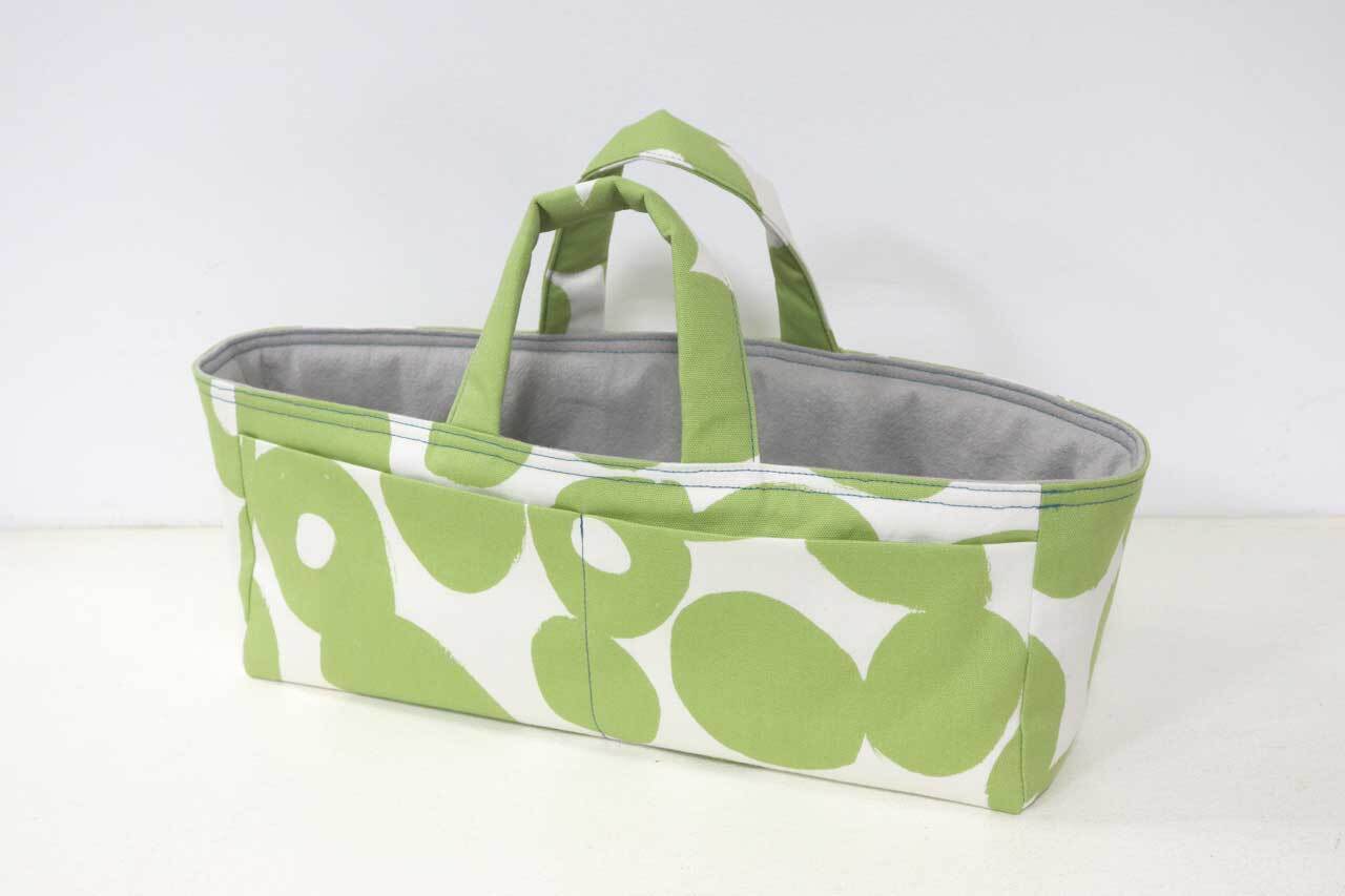 口のステッチミシンは2本かけ、持ち手がすっと立ち上がるようにしました。