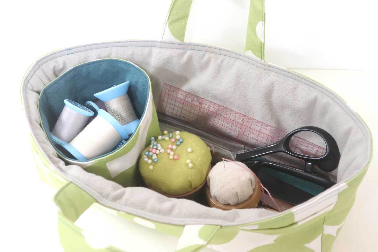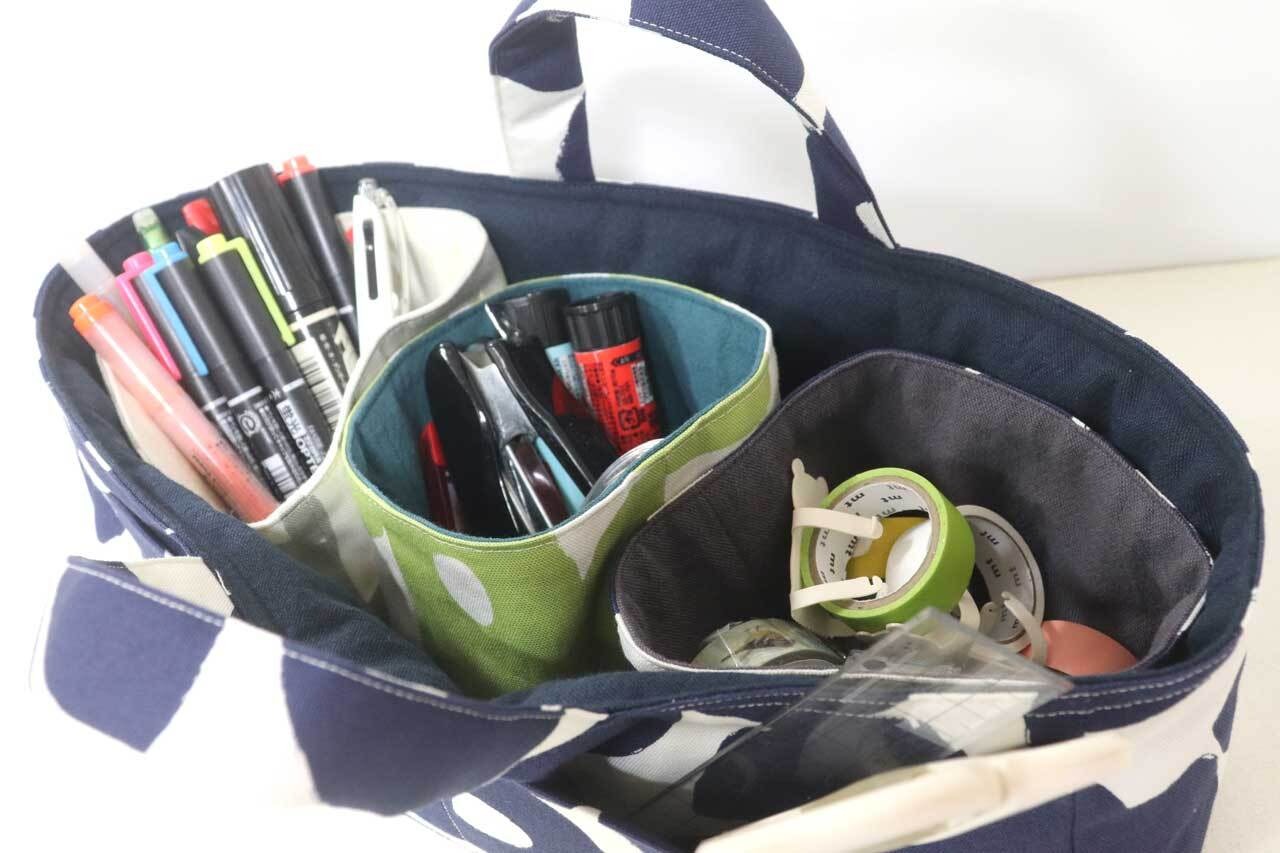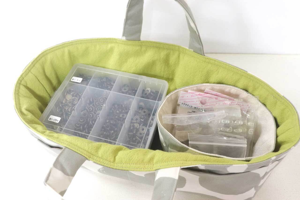 ソーイングに必要なものを全部ここに入れておけば、このまま作業場所に移動して使えます。