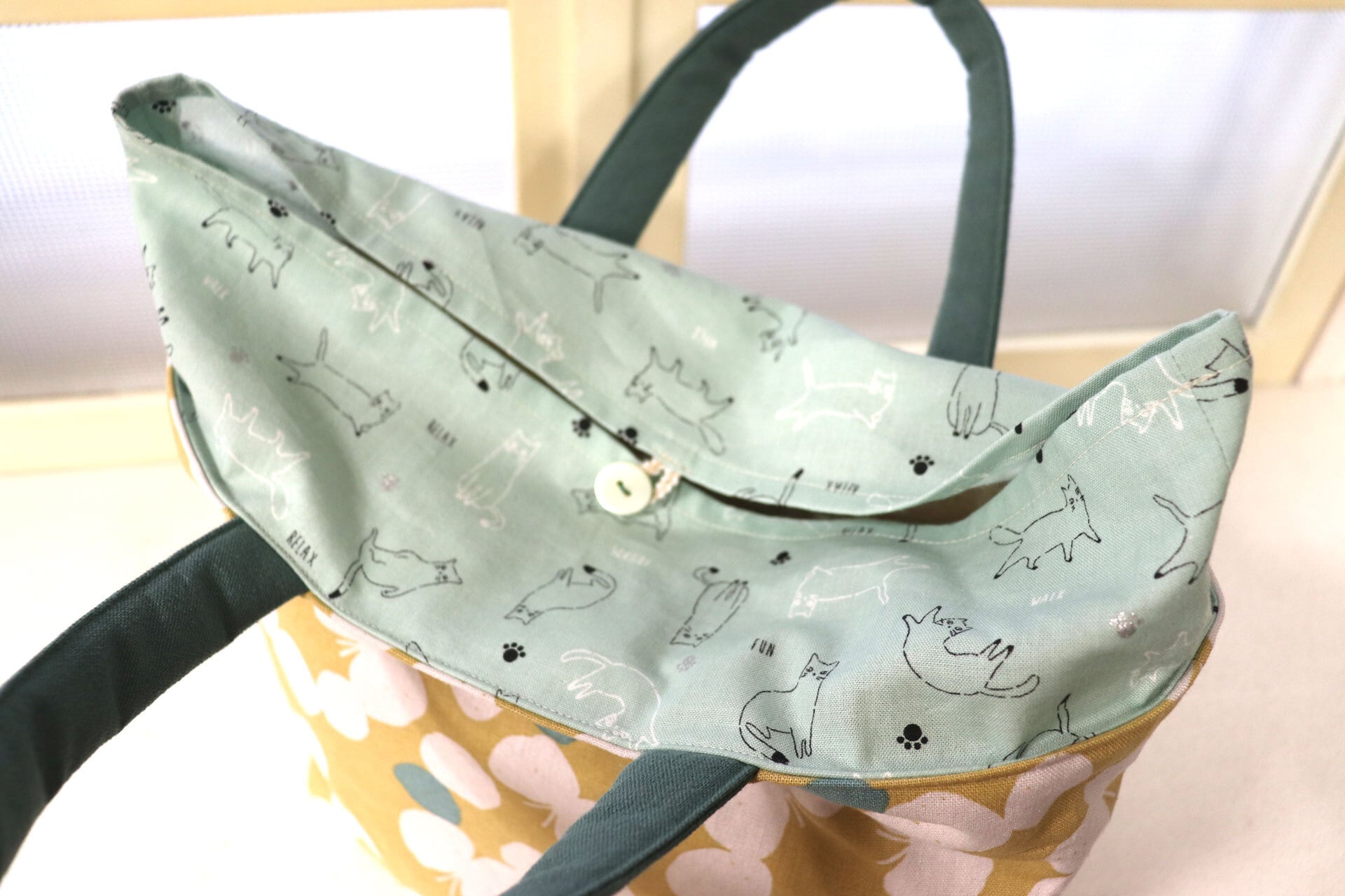 このトートバッグにはふわっとかぶせるタイプのフタを付けました。