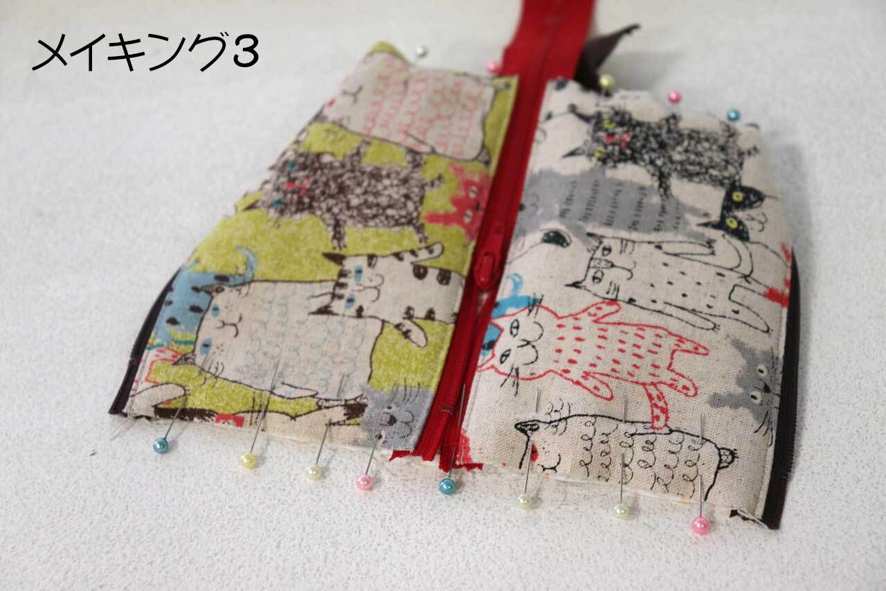 表地、裏地、ファスナーをつないだ後、できあがりに重ねるところが一番難しいです。