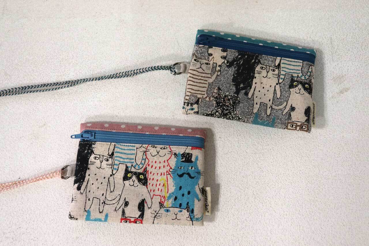 両面がポケットになったファスナーポーチです。