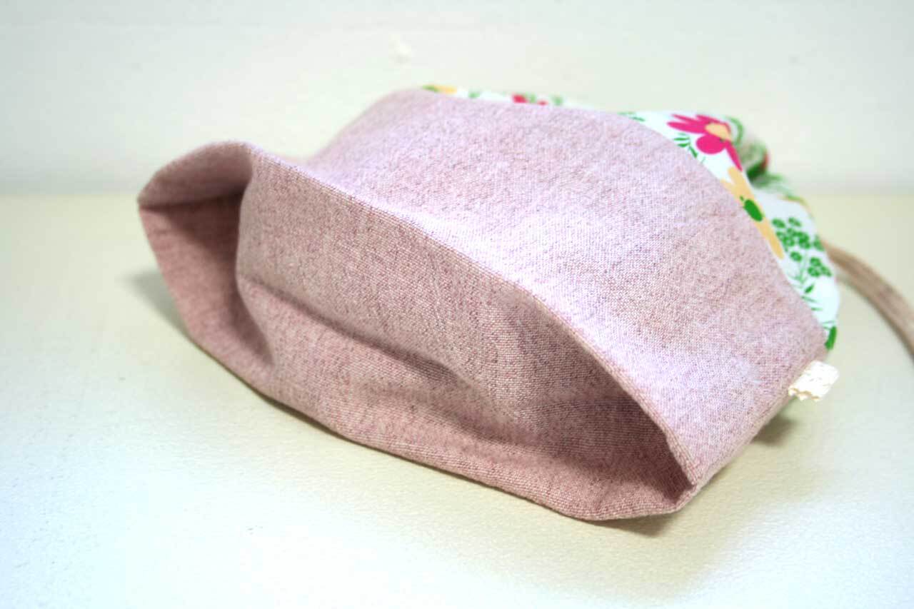 作り方の基本は「pa024/巾着袋(M・L)」と同じで、こちらは内側でたたんでマチを作ります。